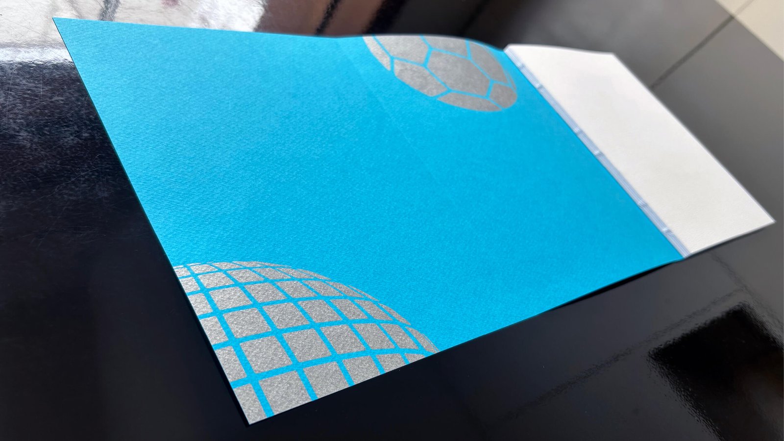 Artecolor turquesa de 200 g con impresión en plata y aplicación de hot stamping plata