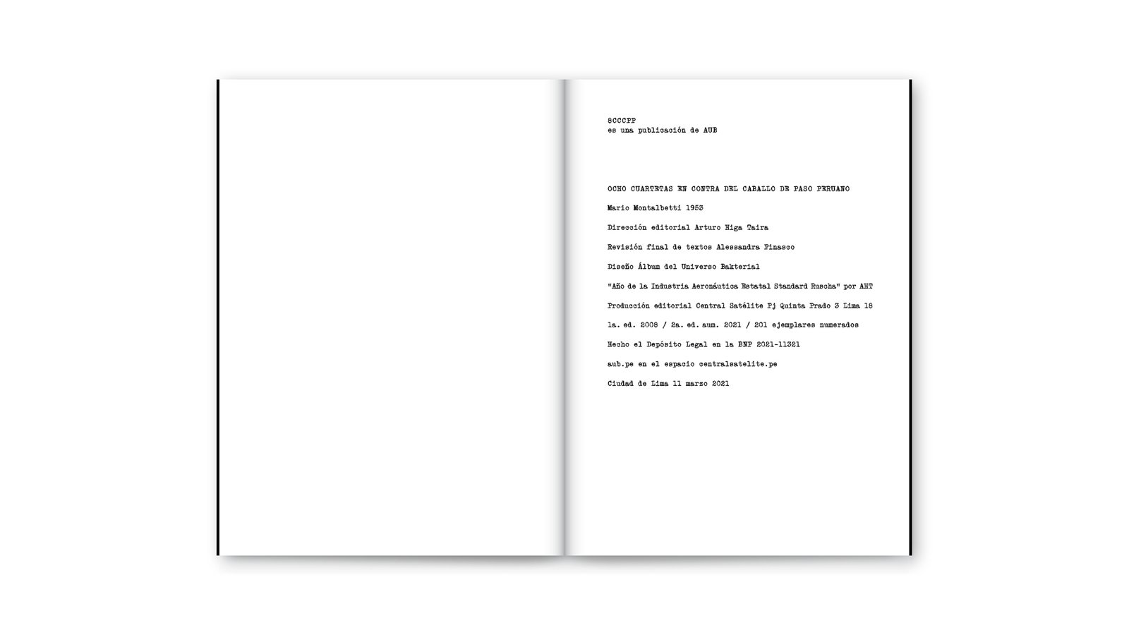 Ocho cuartetas en contra del caballo de paso peruano (2a. ed. aum.) / Mario Montalbetti / marzo, 2021