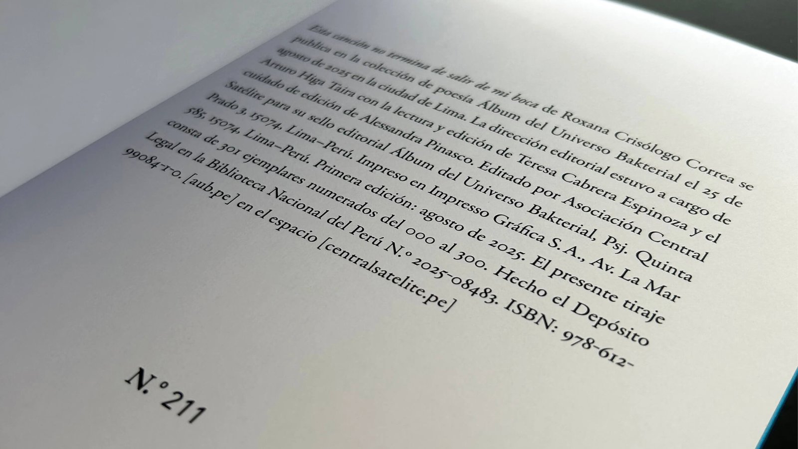 Esta canción no termina de salir de mi boca / Roxana Crisólogo Correa / agosto, 2025