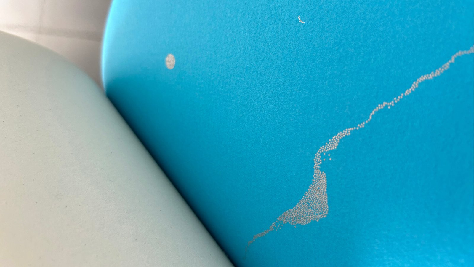 Artecolor turquesa de 200 g con impresión en plata y aplicación de hot stamping plata